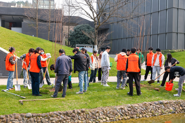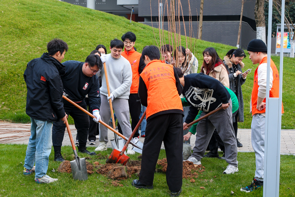 合抱之木,生于毫末;十年树木,百年树人。3月12日是我国第46个植树节,当天下午,学院党政领导班子成员干武东、王瑞、王均寅、蔡亦军、奚丽萍、李波、李俊,绿色学校创建领导小组成员、各单位负责人及学生志愿者来到乐章大道音乐裙楼水系周边,挥锹铲土、培土围堰、提水浇灌,栽种下桃树、李树,现场一派热火朝天。