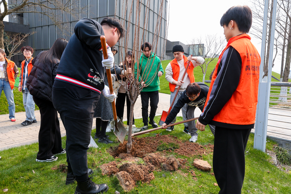 为持续推进4A级景区标准校园建设,提升校园绿化总体品质和景观效果,2023年,学院延续“音院山居、流动地景”设计理念,结合校园空间和建筑意象规划校园十景建设。建设实施过程以现有校园绿化景观为基础,结合绿化日常养护修复和补种工作逐步提升,目前已建成“花境音符”和“音院探梅”两个景点,并计划于2024年打造“桃李芬芳”和“音乐花田”,此次植树节活动涉及“桃李芬芳”景点一期内容。学院挑选品虹、品霞、菊花桃、碧桃等适应性较好的桃、李品种,营造浙音“桃李满天下”寓意的景观场景。