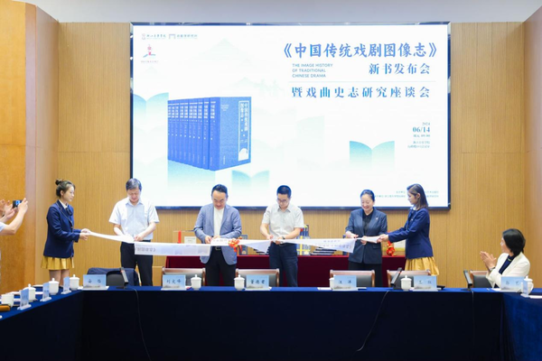 6月14日,由浙江音乐学院、文化艺术出版社有限公司联合主办的“《中国传统戏剧图像志》新书发布会暨戏曲史志研究座谈会”在学院举行。文化艺术出版社总编辑王红,浙江省文化广电和旅游厅非遗中心主任、省非遗馆馆长郭艺,中国戏曲学院副院长冉常建,中央戏剧学院教授麻国钧,山西师范大学原副校长、教授车文明,四川省川剧研究院原院长杜建华,中国艺术研究院原常务副院长吕品田,以及学院副院长汪洋、董德君出席活动,科研处、戏剧系、图书馆相关负责人,业内相关专家学者等30余人参加会议。