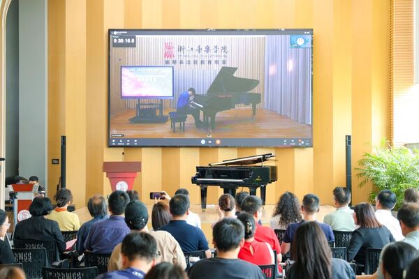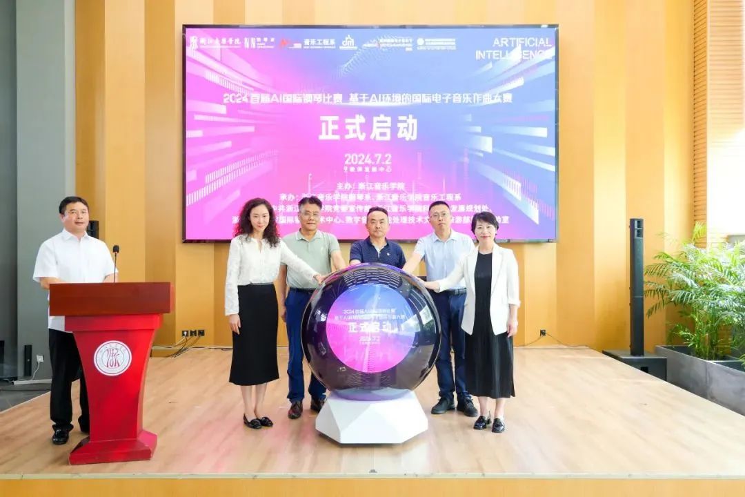 7月2日,一场充满“未来感”“想象力”的特殊新闻发布会——2024首届Al国际钢琴比赛 基于AI环境的国际电子音乐作曲大赛新闻发布会在浙江音乐学院举行。大赛由浙江省教育厅、浙江省文化广电和旅游厅、杭州市商务局支持,浙江音乐学院主办,钢琴系、音乐工程系承办。学院党委委员、副院长董德君,省教育厅、省商务厅、省文化广电和旅游厅有关处室负责人,杭州市商务局、省电子竞技协会有关负责人,以及部分媒体、兄弟高校、相关企业代表等出席活动。