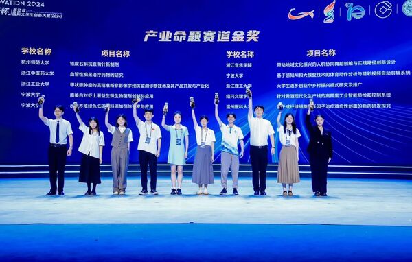 在刚刚落幕的浙江省国际大学生创新大赛(2024)中,学院喜获金奖3项、银奖3项,获奖总数再创历史新高,并获“优秀组织奖”。