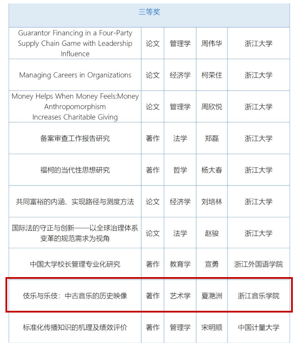 近日,教育部正式公布第九届高等学校科学研究优秀成果奖(人文社会科学)评选结果,我校夏滟洲教授的著作《伎乐与乐伎:中古音乐的历史映像》(商务印书馆出版)获著作论文奖三等奖。