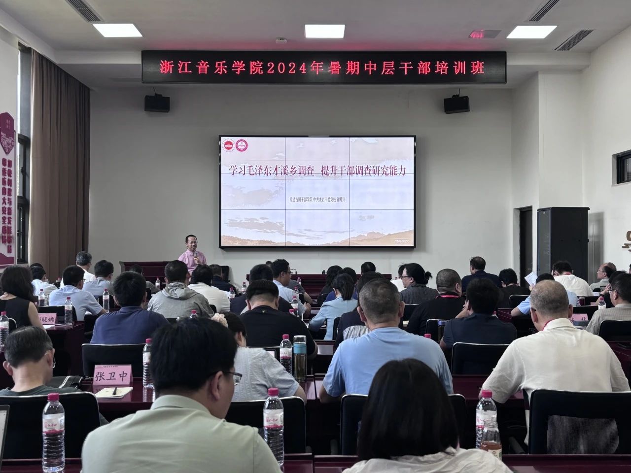 干武东要求,全体学员要深刻认识此次培训的重要意义,深刻领悟古田会议精神、大力弘扬调查研究优良传统,要坚持学有所获、学以致用,为建设高水平一流音乐学院提供坚强保障。一是要明确“学”的方向。深刻理解本次培训班是深入学习贯彻党的二十届三中全会精神和省委十五届五次全会精神的需要,是加强中层领导班子和领导干部思想政治建设的需要,是建设高水平一流领导骨干队伍的需要。二是要注重“学”的方法。要坚持原原本本学,不断提高马克思主义理论水平,用科学的理论来统领工作;坚持带着问题学,提升调研能力,更好地推动学校重点改革攻坚任务和重点推进项目落细落实,更好地解决好师生面临的急难愁盼问题。坚持联系实际学,努力寻找到符合本单位的改革创新之道,切实做到知行合一、融会贯通。三是要提升“学”的成效。要学出风清气正的“好生态”、学出改革创新的“精气神”、学出浙音干部的“好形象”,聚焦“大党建”“大改革”“大人才”“大成果”,在高水平一流音乐学院建设中奋发有为。