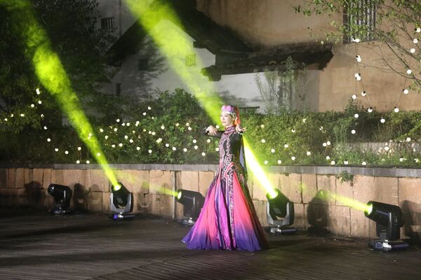 千年前,祝英台从这里出发,开启了一段旷世奇缘。月光下,丰惠古城的石板路泛着柔和的光泽。古戏台上,一曲越剧选段《梁祝》如泣如诉,穿越时空的界限,与古城的每一寸土地共鸣。