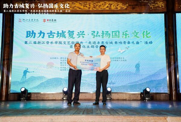 值得一提的是,此次活动不仅仅是艺术的展示与交流,更是校地合作、文化共建的生动实践。团队还特地为丰惠古城捐赠了一批图书,旨在丰富当地的文化资源,促进知识传播。