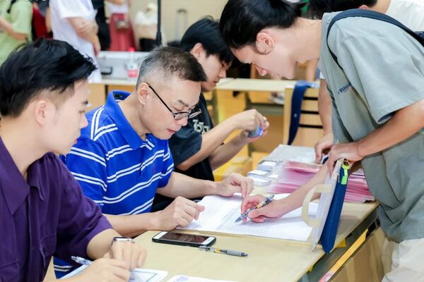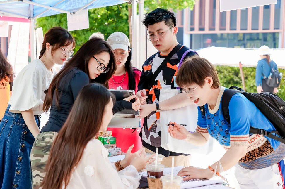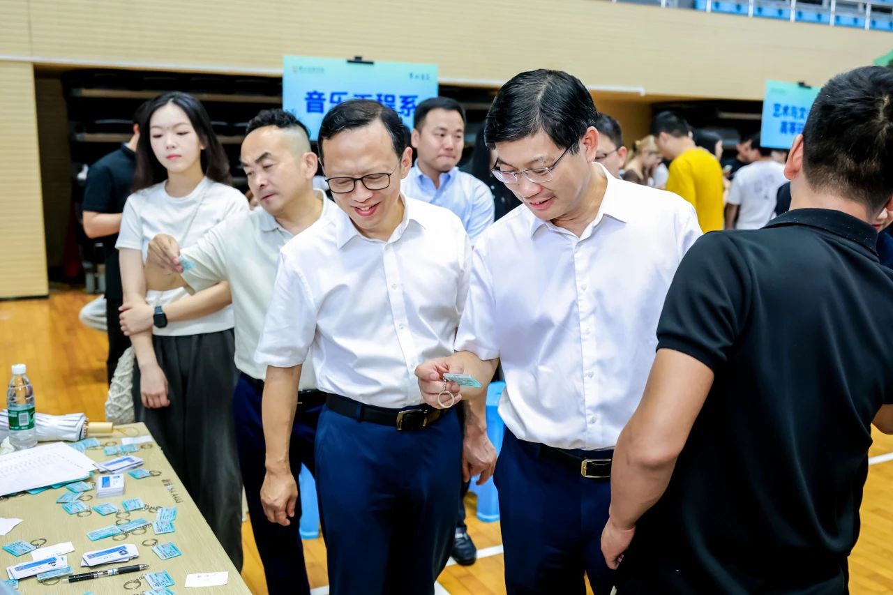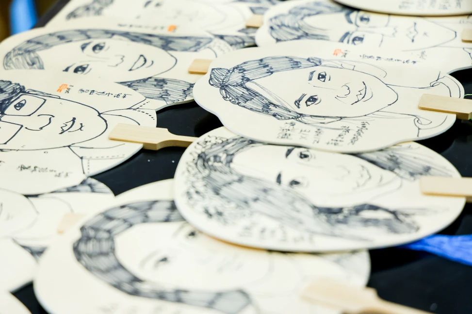 各院系用心策划、创意十足,戏剧系为每位新生定制专属“车票”钥匙扣,始发站是自己的高中,终点站是浙音,每张“车票”上都有自己的名字,带给新生满满归属感。声乐歌剧系辅导员发挥自身专业特长,细心观察每位新生的照片,提前半个月就开始为75位新生分别手绘漫画扇子,直到报到当天的凌晨三点才完工。每位收到扇子的学生都怀着惊喜与感动,忍不住细细端详扇子上的自己,感受来自浙音的用心与关爱。