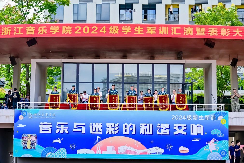 飒爽戎装燃青春,不负韶华砺锋芒。9月20日下午,学院2024级新生军训汇演暨表彰大会在田径场举行。学院党政领导班子成员干武东、王均寅、蔡亦军、汪洋、奚丽萍、董德君、李俊、施莹,中国人民解放军驻杭部队上尉、军训营营长张姚出席大会,相关职能部门负责人、各院系党政负责人,全体带训教官、助理教官、辅导员、新生班主任及受训学生参加。大会由副院长汪洋主持。