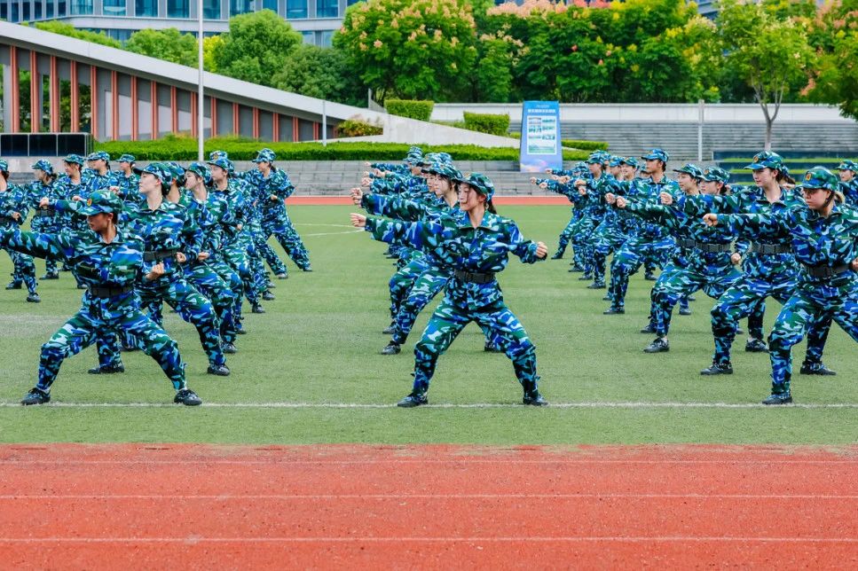 现场还进行了分列式及汇报表演,军歌嘹亮响彻云霄,动作整齐彰显铮铮铁骨,充分展现了浙音学子朝气蓬勃、斗志昂扬的时代新风貌。