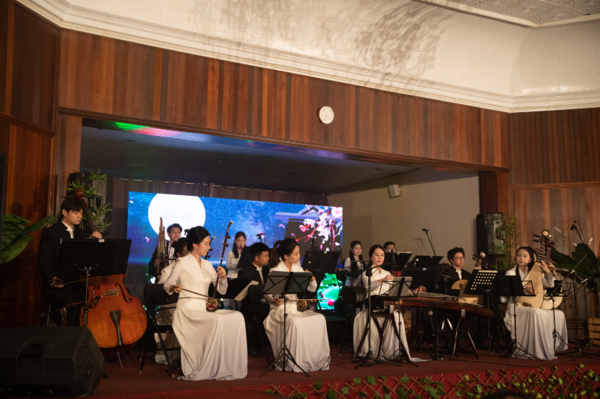 民族室内乐团为现场观众倾情演绎了中外经典曲目,用音乐分享中国人民庆祝国庆佳节的喜悦之情,带领毛里求斯的观众感受中国各地的民族文化,传递中毛友好情谊。乐团演奏了经典民乐《春江花月夜》《梅花三弄》,浙江韵律《诗语浙江》,四川歌谣《太阳出来喜洋洋》,河南小调《编花篮》等极具中国地方特色的曲目。《我的祖国》和《我和我的祖国》将音乐会气氛推向最高潮,触动了在场华人对伟大祖国的深厚感情。压轴曲目《塔尼尔》《欢乐的歌舞》则是用中国传统乐器演奏毛求和非洲当地音乐,别具韵味,让观众在音乐中感受中毛友谊、品味世界大同。
