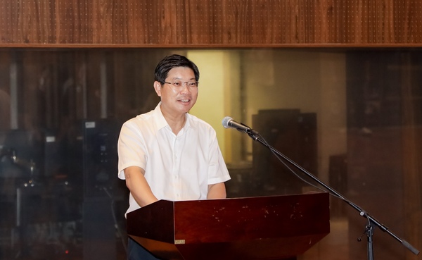 干武东在发言中首先对腾讯音乐领导和研修班学员一行表示热烈欢迎,并向大家介绍了学院近年来的发展成就以及办学特色、办学优势等。他表示,研修班是浙音与腾讯音乐校企合作的重要成果,学员所涉及的领域方向,与浙音有着高度契合的产学研合作属性。针对后续的合作,他指出:一是加强人才培养合作,通过实习实践、毕业生招聘、师资和课程共建等深化产学研合作;二是加强科研与艺术创作领域合作,可以依托浙音高水平的科研与艺术创新平台,加强在音乐人工智能、游戏影视音乐设计、数字音乐技术研发以及舞台剧目、原创音乐等领域的合作;三是加强互联网音乐教育领域合作,推进音乐数字课程资源和音乐互联网平台建设,面向市场,做大做强音乐教育产业;四是加强音乐文化产业领域合作,在优质音乐内容、艺术节品牌、音乐版权、音乐演出等方面共建共享,依托浙音丰富的文艺资源和剧场条件开展各类演出、重大活动等演艺产业领域合作。