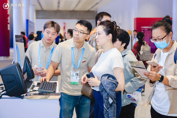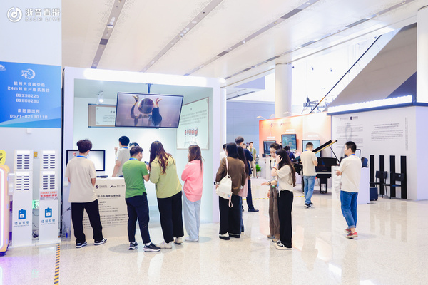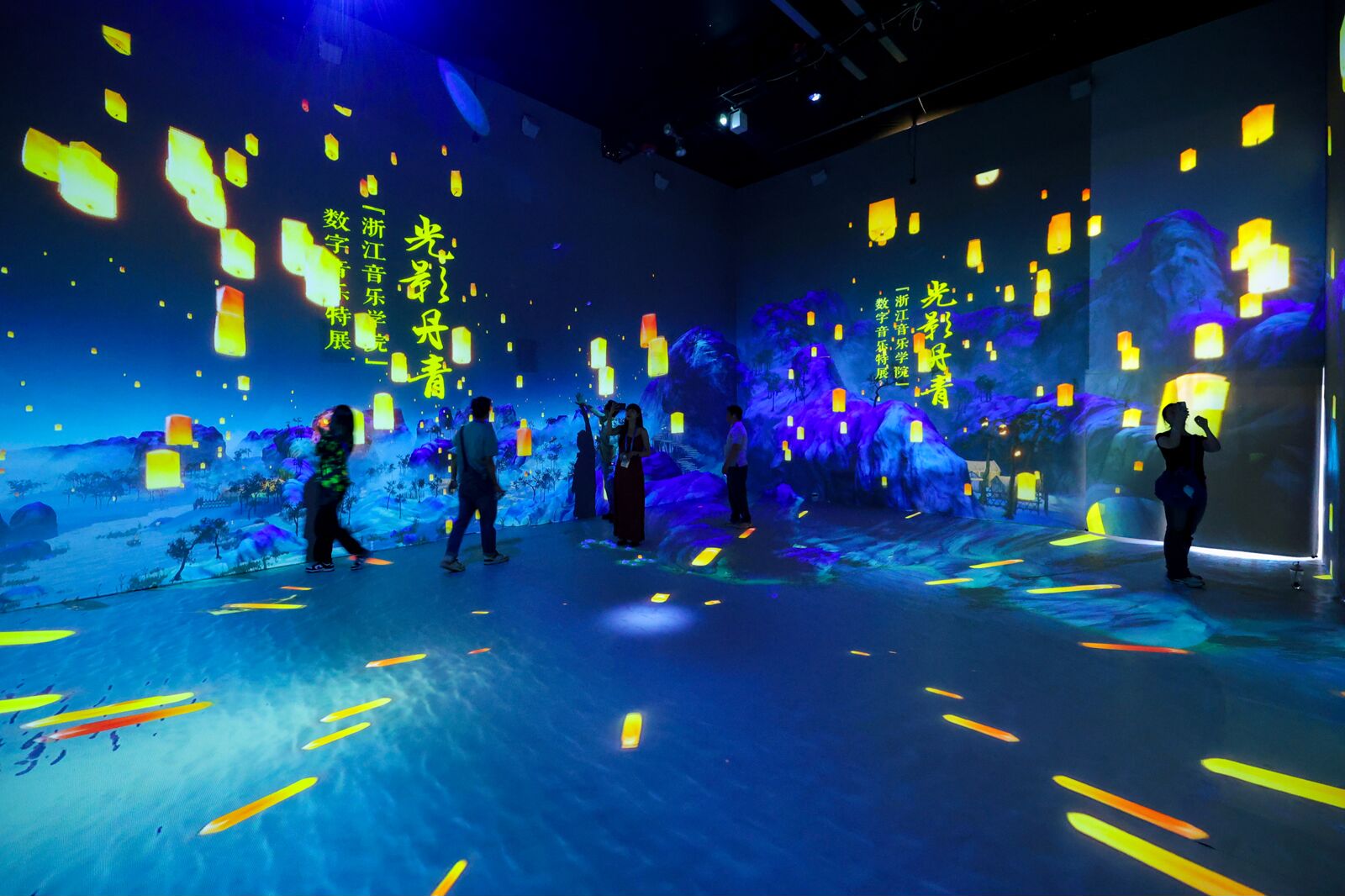 在杭州大会展中心的2号、8号馆,浙江音乐学院带来了“数字驱动乐器展”和“数字音乐特展”两大板块,展出由音乐工程系、数字音乐智能处理技术文化和旅游部重点实验室带来的交互音乐装备,和沉浸式声影交互展《光影丹青》。这些内容吸引大批嘉宾与观众目光,成为数贸会中“最有文艺气息、最具人文关怀”的一环。
