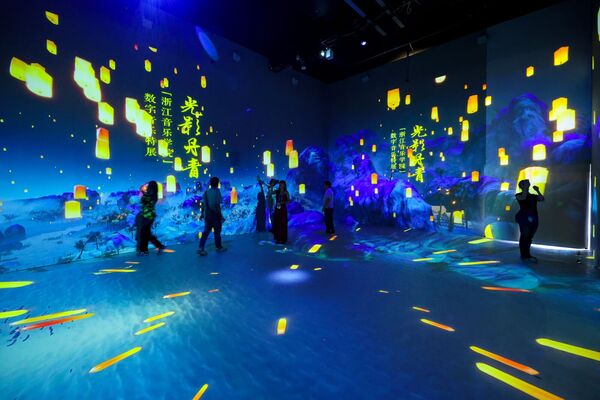同样位于8号馆的沉浸式声影交互展《光影丹青》,首创以虚拟现实引擎驱动空间投影技术,同时采用全新的空间音频智能处理技术和视、听、触多感官实时交互装置,使中国历代绘画在声、光、影中“活起来”,引领观众走进国风十足的画境空间。