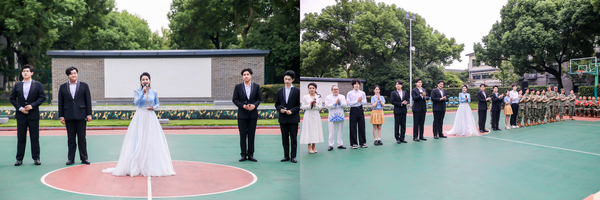 随后,在国防教育主题园的篮球场上举行了一场别开生面的“文艺轻骑兵”慰问演出。浙音师生与省军区官兵倾情呈现《梦想天堂》《打枣》《芦花》《雄师风采》《离别开出花》《当兵光荣》《当那一天来临》《我和我的祖国》等节目,每一个节目都饱含深情,展现了对国家和军队的无限热爱。