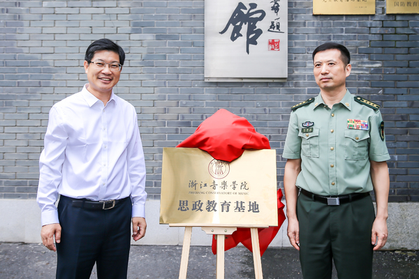 参观结束后,双方领导共同为“浙江音乐学院思政教育基地”揭牌。该基地设于省军区军史馆内,基地的建立将为学院师生提供更加直观、生动的国防教育平台。