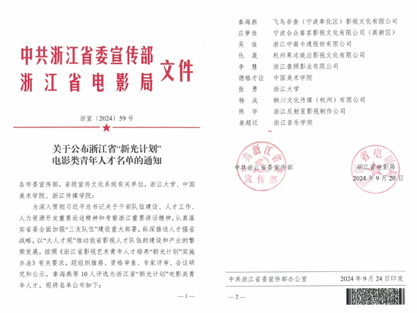 我校教师入选浙江省“新光计划” 电影类青年人才