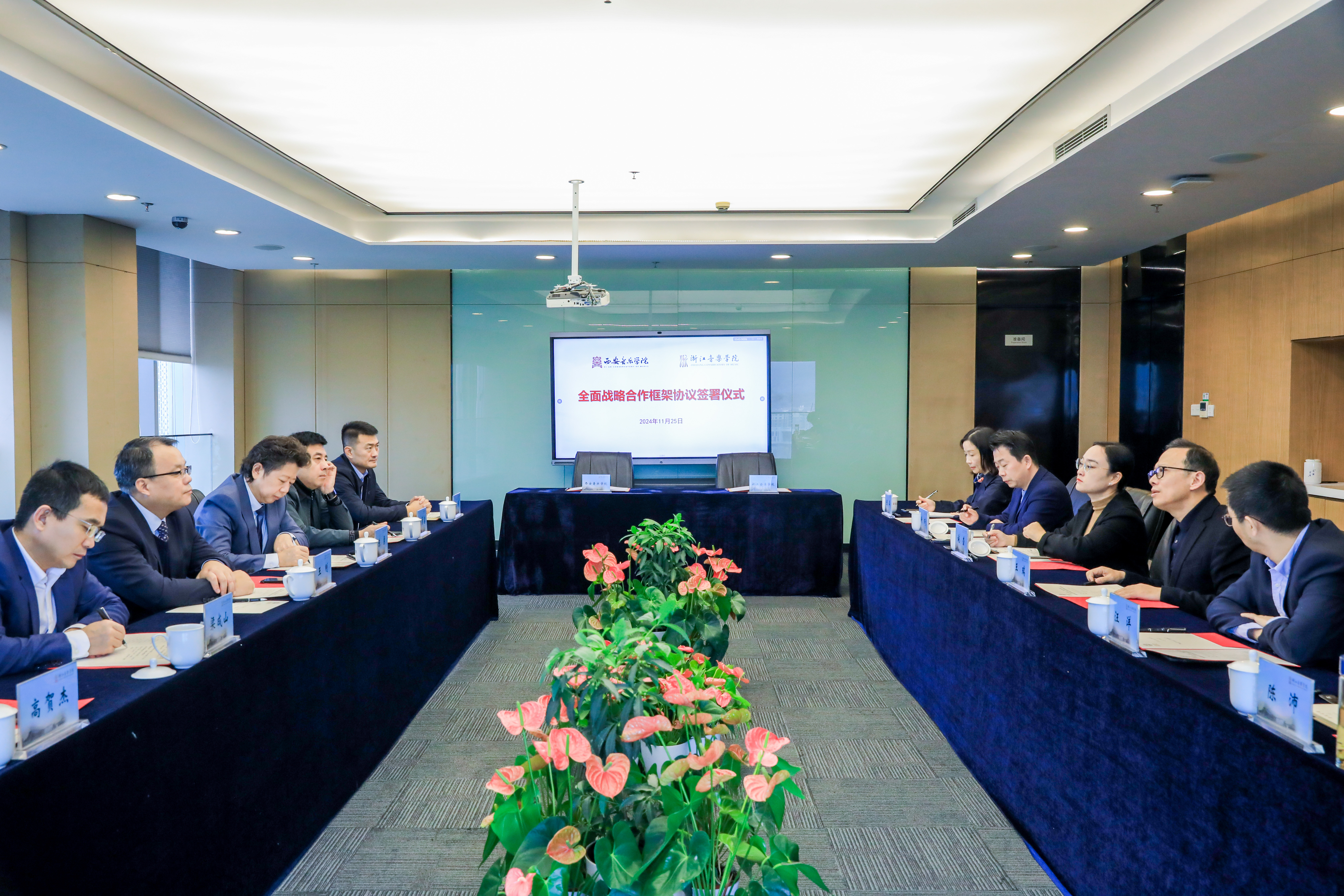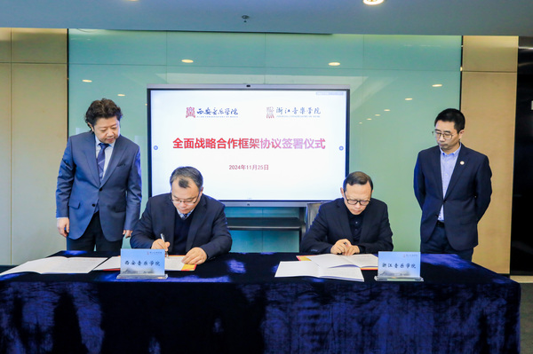 11月25日上午,浙江音乐学院与西安音乐学院战略合作协议签约仪式在行政楼1004举行。院长王瑞,副院长汪洋,党委委员、宣传部部长、教师工作部部长施莹,西安音乐学院院长王刚、副院长陈勇等出席。