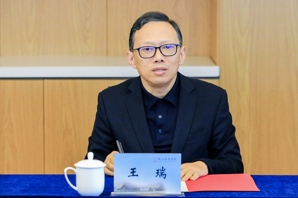 王瑞对王刚一行表示诚挚欢迎,并介绍了学院近年来的办学发展情况、专业特色以及艺术品牌活动。他表示,西安音乐学院办学历史悠久、底蕴深厚,为国家培养出一大批高水平音乐人才。两校特色鲜明,办学互补性明显,在人才培养、学科建设、文化传承、服务社会和特色办学等方面,均有广泛的合作空间。此次签订全面战略合作协议将进一步推动双方共建共享、互利共赢,促进双方高质量办学发展。他还向西安音乐学院发出邀请,希望其进一步参与到浙音的品牌音乐节中,积极利用浙音的开放科研平台,共同围绕“一带一路”倡议等国家重大决策,持续推进两校间的深度交流与合作。