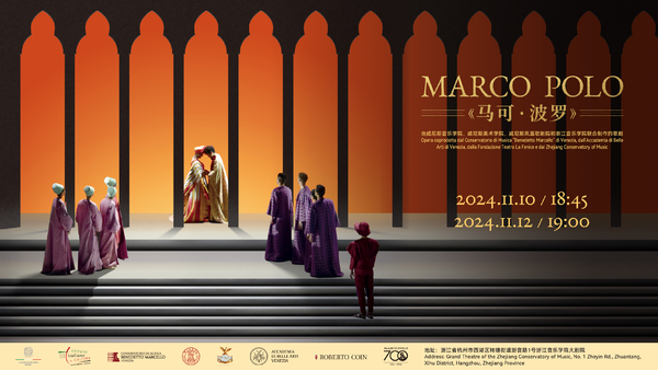 歌剧《马可·波罗》是一部由中意两国共同创作、推动的歌剧作品,由威尼斯音乐学院、威尼斯美术学院、威尼斯凤凰歌剧院和浙江音乐学院联合制作,并获得了意大利驻沪总领事馆和意大利驻沪总领事馆文化处的特别支持。马可·波罗作为东西方文化交流的使者,为西方世界打开了认知中国的窗口。该剧由安东尼诺·皮奥编剧,玛丽安娜·阿奇托、雅科波·卡内瓦、安娜·多布鲁茨卡和保罗·诺塔贾科莫谱曲,讲述了马可·波罗被囚禁于热那亚,通过回忆重新体验他在中国大地上的非凡冒险。今年4月,该剧在威尼斯凤凰歌剧院演出,受到了广泛关注和好评。此次在浙江音乐学院的演出是中国首演,浙江音乐学院MTC合唱团担当全剧的合唱。