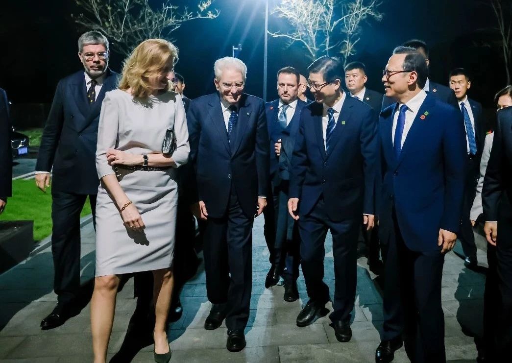 一同来访的意方嘉宾有:总统女儿劳拉·马塔雷拉女士,意大利外交与国际合作部副部长埃德蒙多·奇利埃利,意大利驻华大使安博思,意大利驻沪总领事安缇雅,以及意大利访华代表团的成员。