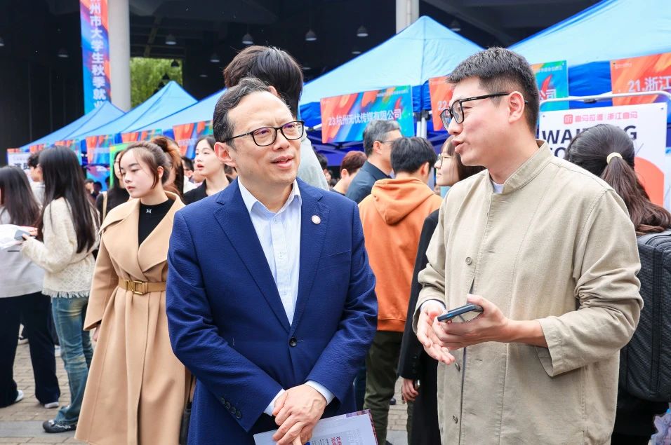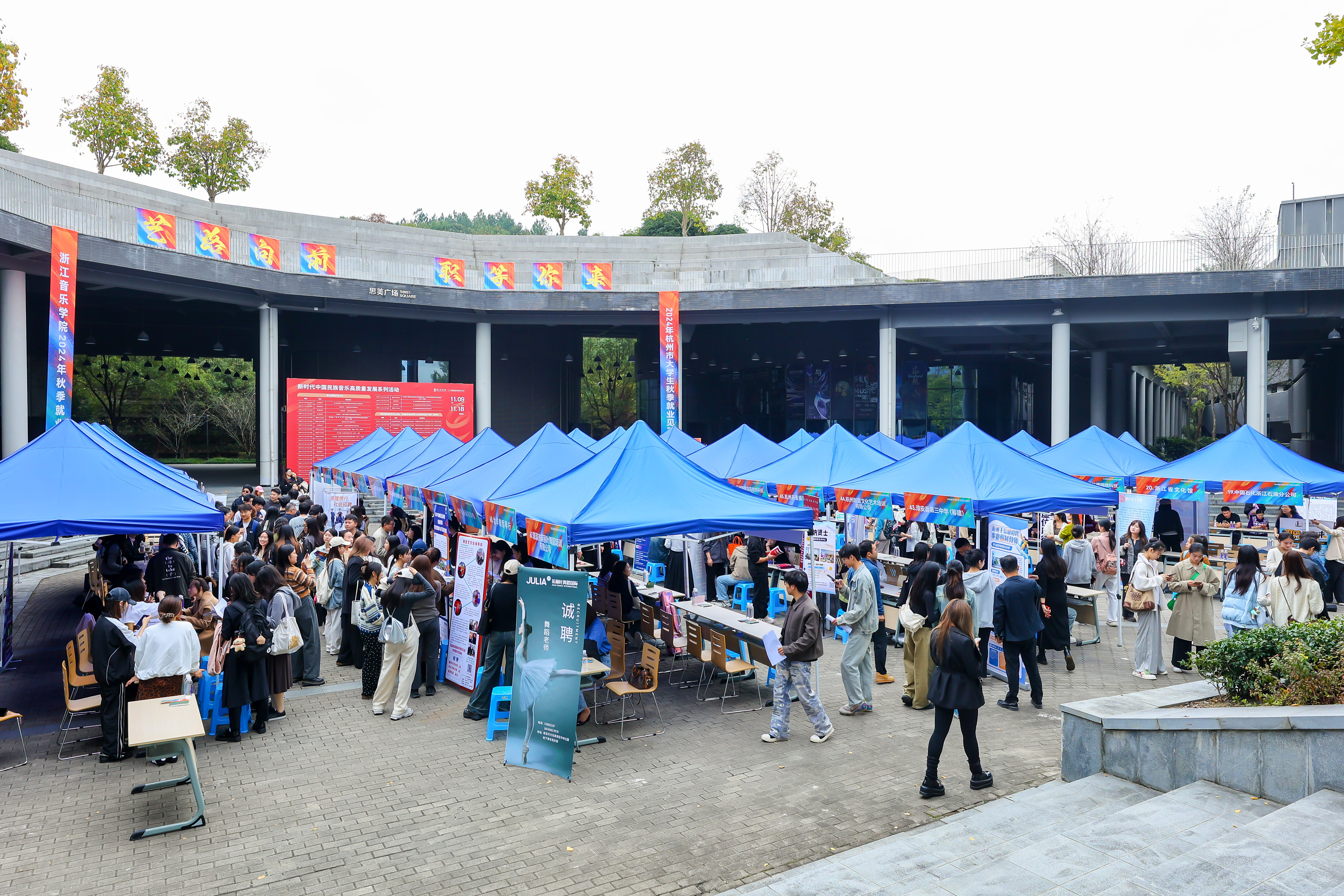 为进一步推进2025届毕业生就业工作,搭建用人单位与毕业生双向选择平台,11月13日下午,由浙江音乐学院和杭州市就业管理服务中心联合主办的 “艺路向前”2025届毕业生秋季就业招聘会在校园内举办。全国110余家用人单位参会,为浙音毕业生提供超1000个就业岗位。全体党政班子成员来到招聘会现场,共同关心毕业生求职就业情况。