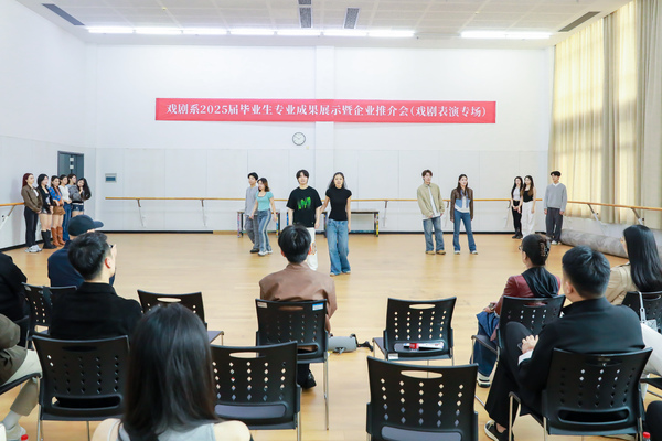 为精准化落实高质量充分就业,学校实施“将招聘会开在舞台上”的重要举措,本次招聘会的一大亮点就是设置“戏剧专场招聘会”。拥有四个表演专业的戏剧系,主动邀请30余家省内外专业院团现场观看、现场选聘人才,实现沉浸式双选。此外,戏剧系还专门设计了《2025届毕业生推介手册》,直观、全面地展示了戏剧系毕业生的形象、专业和特长,受到了用人单位的一致好评。