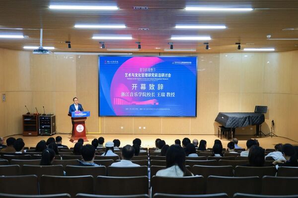 开幕式上,浙江音乐学院院长王瑞教授对参会代表表示热烈欢迎和感谢。他表示,文艺工作座谈会召开10年来,我国文化艺术事业发展取得了巨大成就,但对于当前文化艺术领域出现的新形态,以及文艺创作难以实现有效的自我超越、未能培养出适应新思想的文化新质生产力人才、艺术管理学科有待创新发展等新问题,仍缺乏有效的应对。他认为,文化新质生产力的产出和形成,不仅需要从文艺创作本身发力,更需要借助具有战略思想、组织能力、执行能力的艺术管理者“串珠成链”。艺术管理学科需要重视基础研究,夯实基本理论和基础方法,艺术管理专业应着力关注和研究如人工智能等数字化技术高速迭代下,如何适应文化新质生产力的要求等重大课题和关键问题。浙音高度重视艺术与文化管理学科建设,将其作为办学事业的一项战略性规划,希望各位专家学者在此激荡思想,为艺术管理学科研究前沿留下真知灼见。