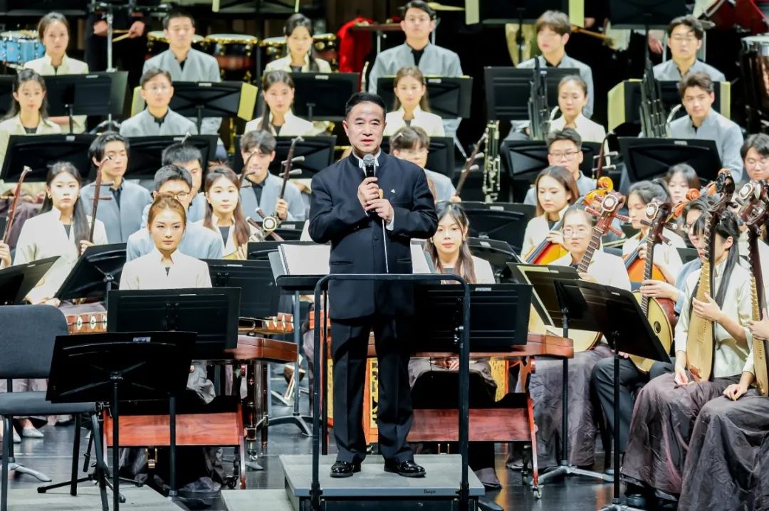 王瑞教授向各位团长发出三点倡议:一是共筑中国民族音乐人才高地。要加强校团合作,共同探索艺术院校毕业生与职业乐团标准相匹配的民族音乐拔尖创新人才培养路径。二是引领中国民族音乐创新发展。要探索校团联合委约创作的机制体制,创作出更多兼具民族特色和时代气息的民乐佳作。三是打造中国民族音乐品牌标识。携手推动中国民族音乐品牌化建设与发展,让中国民族管弦乐成为体现中国式现代化的文化标识和精神标识,向世界讲好中国故事,传播中国声音。