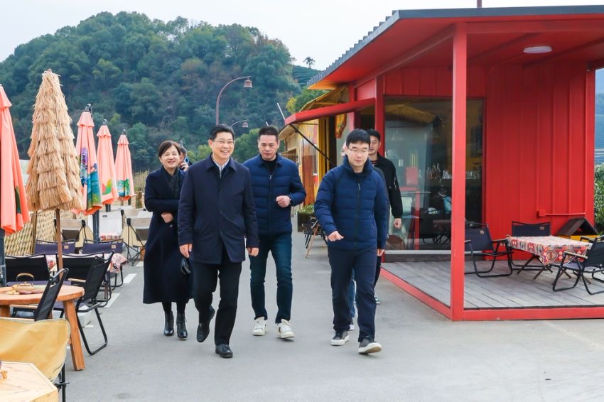 在何家村,干武东一行实地走访了文化礼堂、康乐驿站、共富市集等特色文化场所,全面了解何家村“艺术村长”项目开展情况,近距离体验了“艺术村长”刘福洋老师的现场教学并召开座谈会,详细了解联村共建和“艺术村长”工作情况。