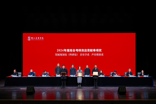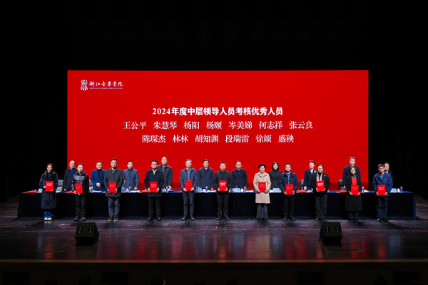 2月19日下午,浙江音乐学院2025年春季学期教职工大会在大剧院举行。会议全面总结学校2024年工作,系统部署2025年重点任务。党委书记干武东、院长王瑞分别讲话,学校党政领导班子成员出席会议。会议由党委副书记王均寅主持。