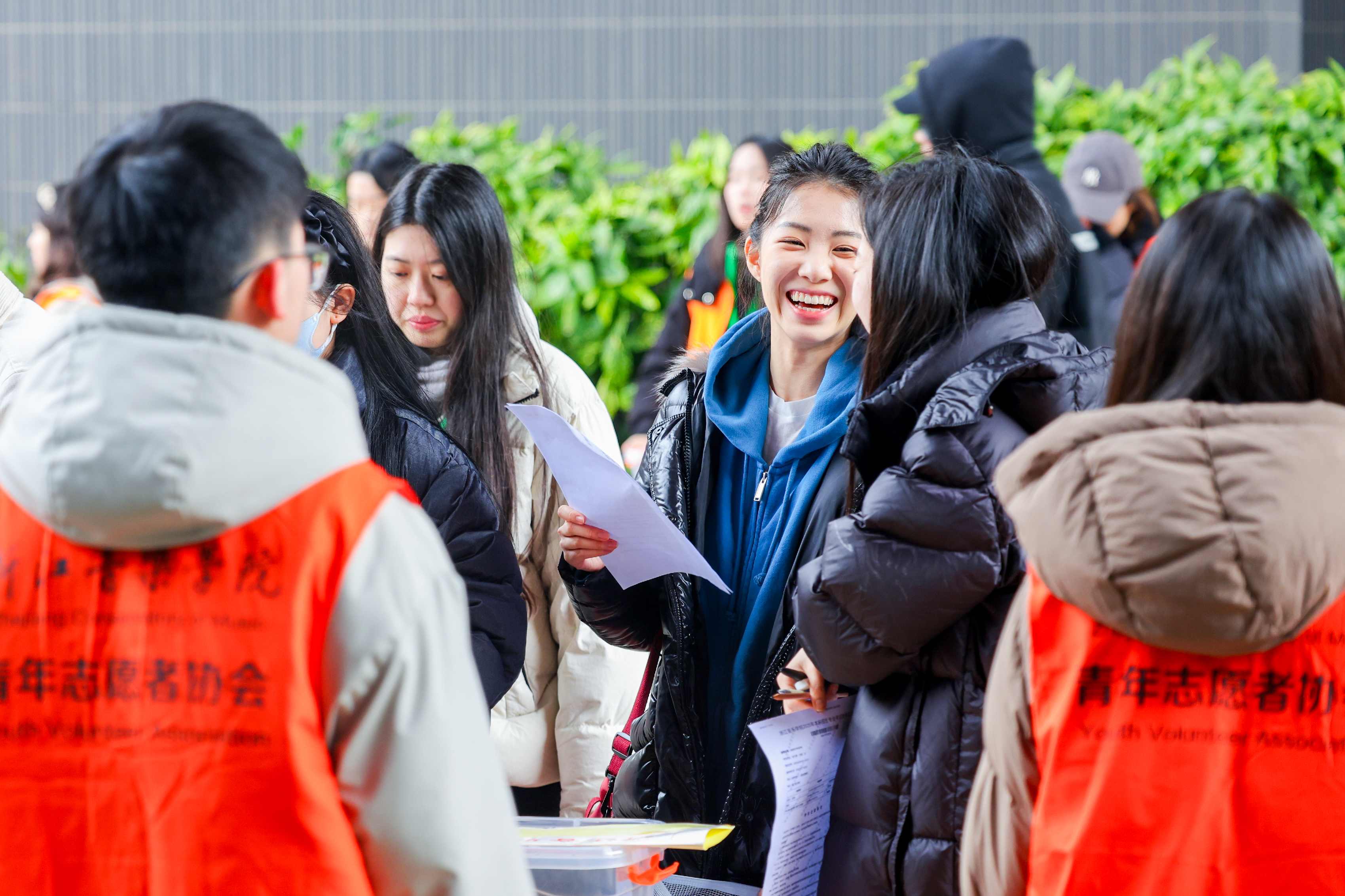 除此之外,还有367名学生志愿者在团委组织下,为考生及家长提供暖心服务。他们身穿醒目的志愿者服装,贴心为考生及家长指路、帮忙搬运大件乐器、对候考区的考生进行登记与引导,热情周到的服务,为考生和家长心田注入一股暖流。“希望他们感受到来自学长学姐的支持与鼓励,也感受到浙音友爱向上的氛围。”校考志愿者的李同学表示。