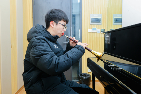为方便考生们进行考前练习,学校还专门开辟学生琴房,供当天考试的考生们“热身”。透过琴房一扇扇玻璃窗,即将进入考场的考生们分秒必争,只为展现自己最好的状态。