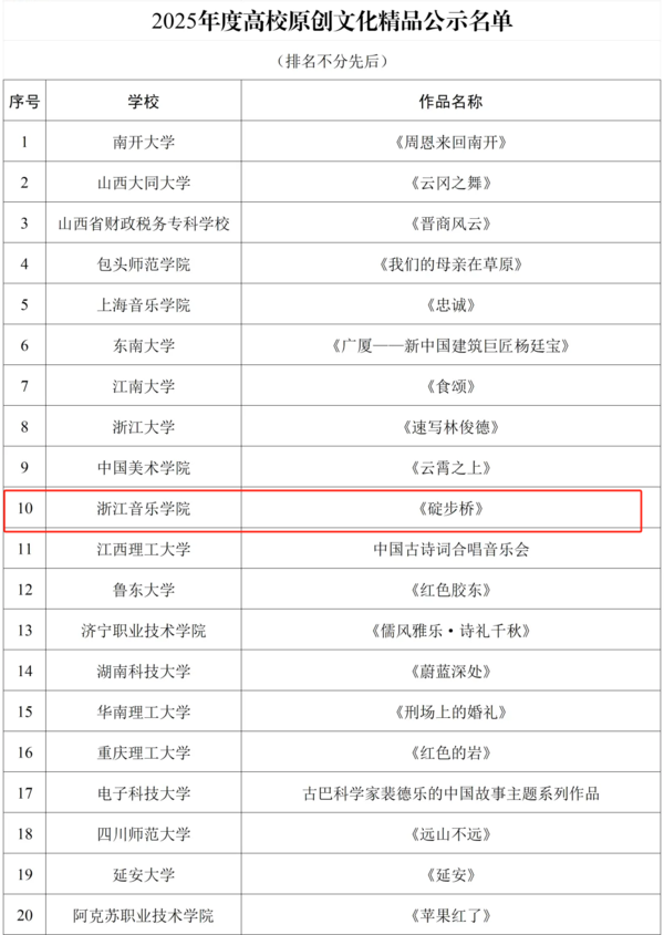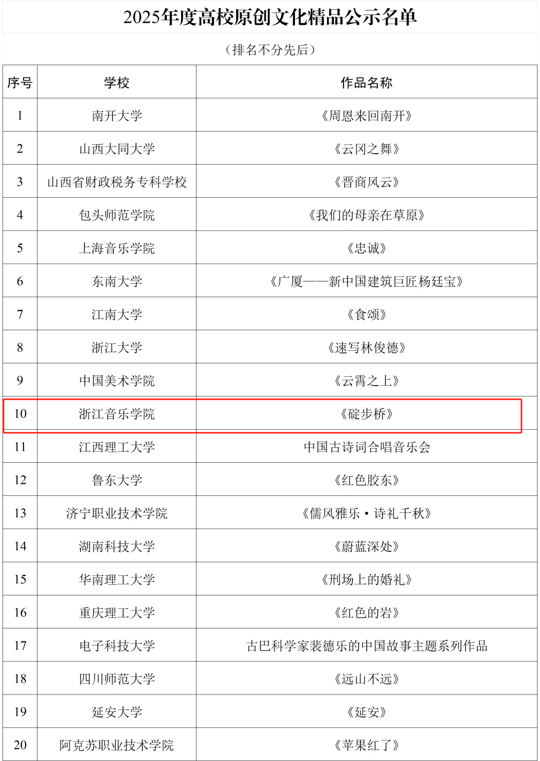 日前,教育部思想政治工作司公示2025年度高校思想政治工作质量提升综合改革与精品建设项目遴选结果,浙音原创舞蹈《碇步桥》获批2025年度高校原创文化精品。