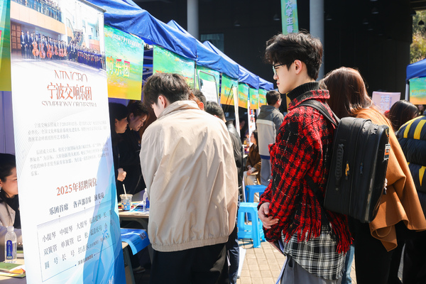 盐官大潮爱乐乐团将浙江首场招聘会设在浙江音乐学院,提供了包括演艺人员、剧场助理等近20个就业岗位。招聘负责人晁岳栋表示,“我们面向全球招聘优秀人才,浙音探索开创了‘五大学院’等创新人才培养模式,培养出一大批高质量艺术表演、管理人才,这正是我们公司所看重的。”
