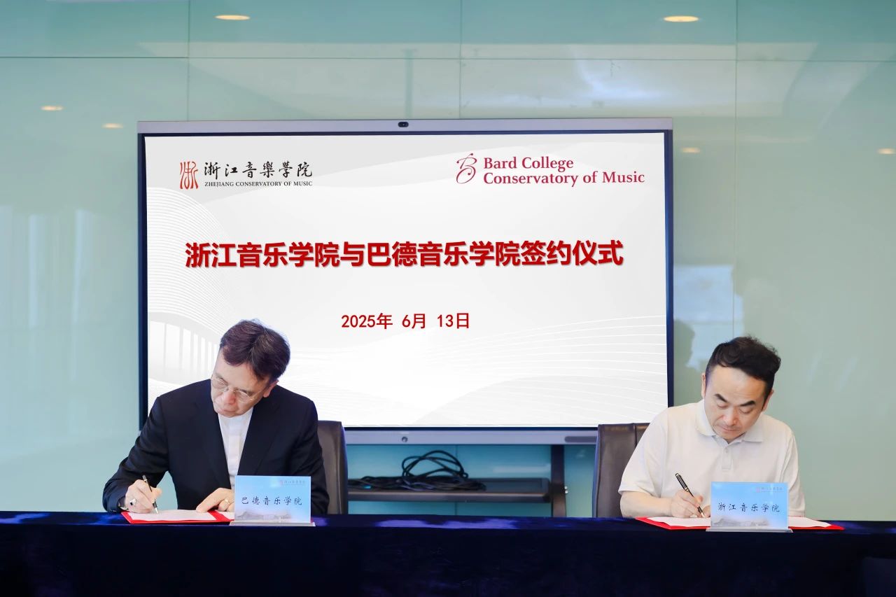 近日,美国巴德音乐学院美中研习院院长蔡金冬携巴德中西乐团一行访问浙江音乐学院。访问期间,两校签署校际合作协议,并联合举办“东西和鸣・乐汇四海——巴德中西乐团与浙音民族室内乐团对话专场”演出。浙江音乐学院院长王瑞会见蔡金冬一行并与之座谈,副院长董德君、国际交流合作处及国乐系负责人陪同。