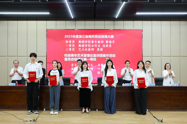 为2025年度浙江省高校思政微课大赛获奖者、校级青年艺术家理论宣讲团展示活动暨思政微课比赛一等奖获得者颁奖