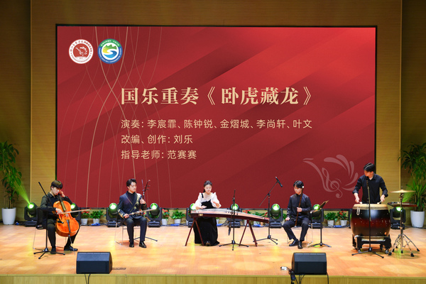 仪式现场,附中学子带来精彩的教学成果展演《最美附中》,表达对新校区启用的喜悦和对学校未来发展的美好憧憬。作品涵盖国乐合奏《卧虎藏龙》、中国舞群舞《小卜少》、弦乐四重奏莫扎特《G大调弦乐四重奏“春天”》第四乐章、现代芭蕾三人舞《十四行诗》、吹打乐合奏《龙腾虎跃》,琴声悠扬、舞姿翩然,尽显艺术教育的丰硕成果。