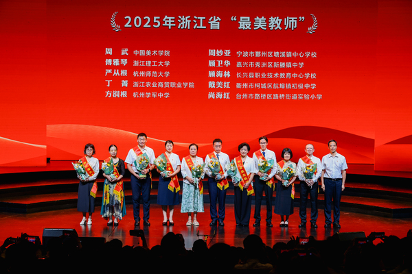 皓月清辉,师韵流芳,今夜舞台的灼灼光华,皆属于秉烛耕耘之人。9月9日晚,由浙江省总工会、浙江省教育厅指导,浙江省教育工会、浙江音乐学院主办的“浙里师音 华章共谱”浙江省第41个教师节庆祝会,在浙江音乐学院音乐厅隆重启幕。来自全省各高校的教育工作者齐聚一堂,共同欢庆属于自己的节日,用音乐礼赞师道,用旋律共谱桃李天下的盛世华章。