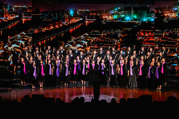 浙江工业大学潮声合唱团演绎的《为祖国歌唱》,以澎湃的声音抒发了在浙江这片热土上,广大教育工作者以知识哺育心灵,以责任浇灌未来的赤子情怀。