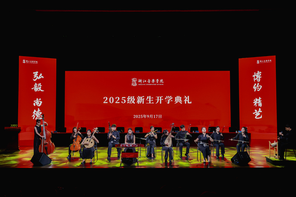 9月17日上午,浙江音乐学院2025级新生开学典礼在大剧院隆重举行。来自海内外的900余位学子汇聚,以音乐为约,共同开启他们在浙音的第一个乐章。