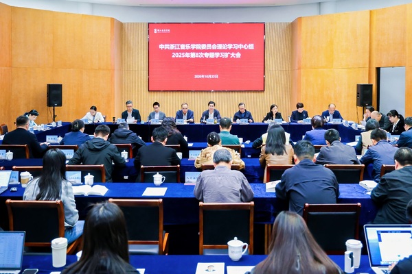 10月22日上午,浙江音乐学院召开党委理论学习中心组扩大会议,专题学习《习近平谈治国理政》第五卷。学校党政领导班子成员干武东、王瑞、王均寅、蔡亦军、汪洋、奚丽萍、李波、李俊、施莹参加会议。党委书记干武东主持会议并讲话。