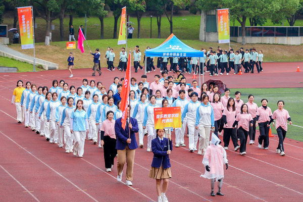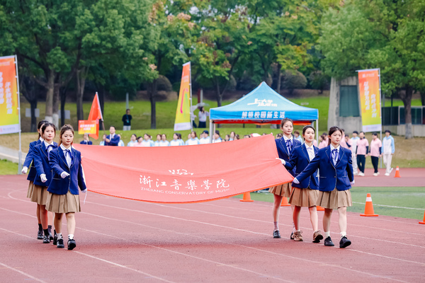 国旗队、校旗队步伐坚定,各院系代表队精神抖擞、依次入场,充分展现了浙音师生团结进取、奋发向上的精神风貌。啦啦操暖场表演活力四射,为全场注入了青春与激情。