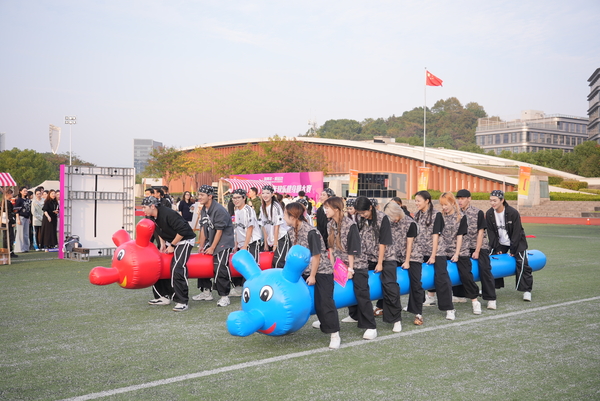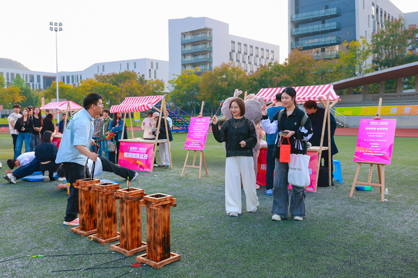 期间还举行了一场嘉年华比赛,其中包括投飞镖、踢毽子、投壶、跳长绳、竞速毛毛虫等多个趣味性活动。大家在这里释放活力,收获友谊,现场洋溢着青春快乐的气息。
