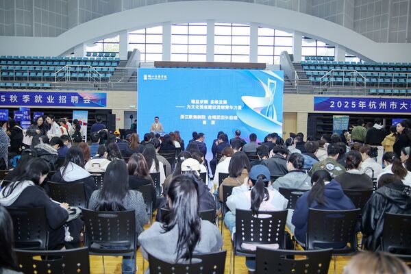 梧桐叶落,秋意正浓,11月12日下午,由浙江音乐学院和杭州市就业管理服务中心联合主办的“艺路向前”浙江音乐学院2026届毕业生秋季招聘会主场活动在学院篮球馆举行。