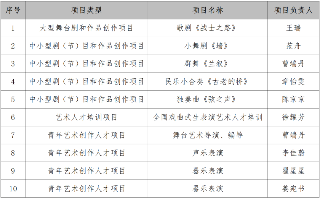 近日,国家艺术基金管理中心公示国家艺术基金2026年度资助项目立项名单。学院10个项目获批立项,入选项目包含大型舞台剧和作品创作项目1项、中小型剧(节)目和作品创作项目4项、艺术人才培训项目1项、青年艺术创作人才项目4项。