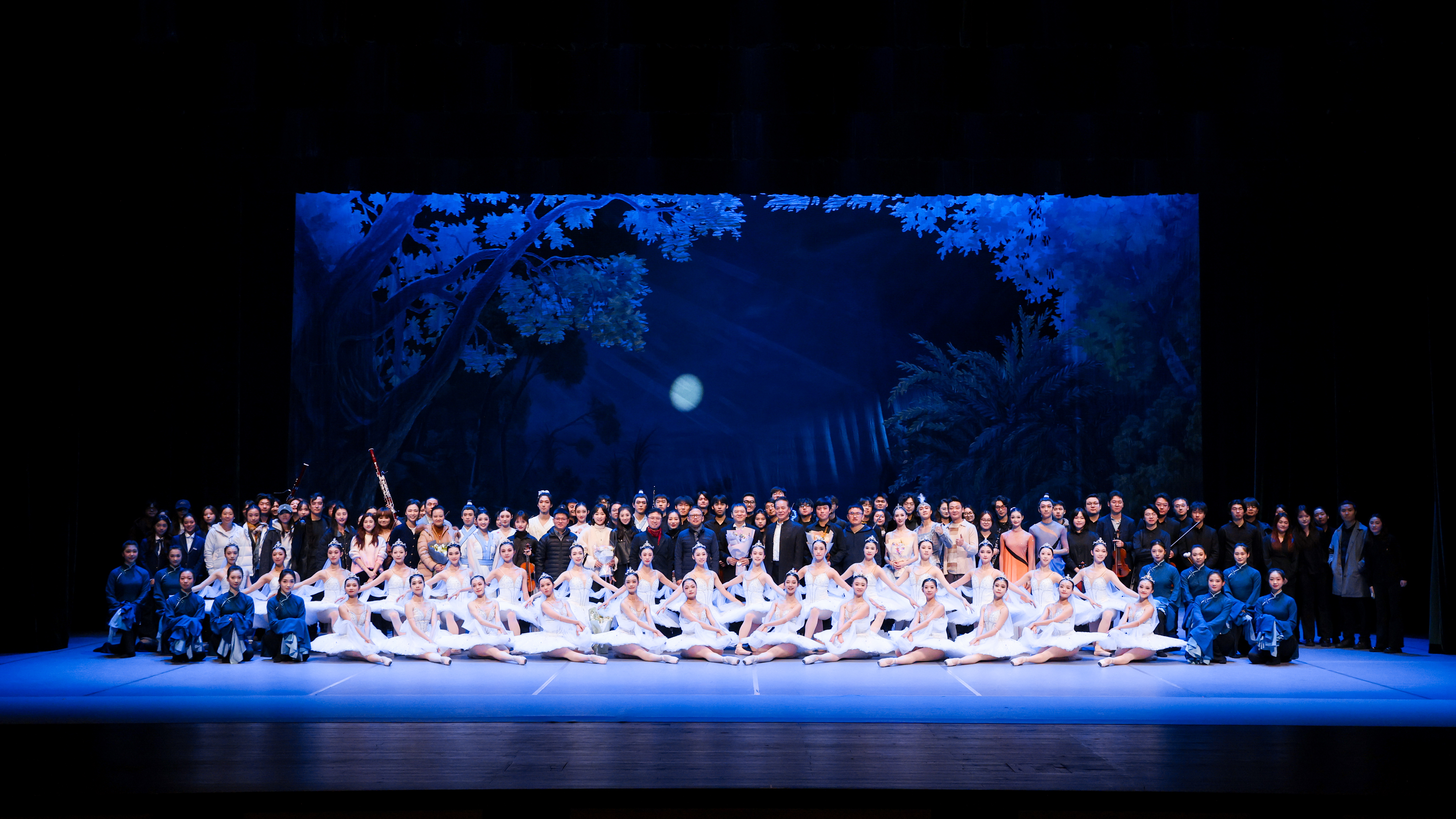 学院充分发挥引才聚才优势,邀请行业顶尖大师加盟,通过“名家托举”的方式为学子搭建通向职业舞台的桥梁。演出特邀中央芭蕾舞团音乐总监、浙音特聘教授及乐队学院艺术总监张艺执棒。张艺教授率领交响乐团于乐池中,以其对舞剧音乐的深刻理解,把控与引领着每一个乐句的起伏,为舞台上的舞蹈学生提供了坚实而灵动的音乐支撑。
