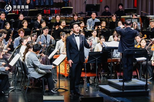 音乐会在气势恢宏的二胡与乐队合奏《万马奔腾》中拉开帷幕。张咏音、梁伟、孔艳艳、刘宇、黄紫沐等6位演奏家以精湛技艺,展现出一幅骏马驰骋、气势磅礴的壮丽画卷,瞬间点燃现场气氛。