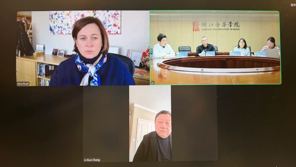 1月27日晚,浙江音乐学院与美国印第安纳大学雅各布音乐学院举行线上合作洽谈会议。学院院长王瑞、雅各布音乐学院院长亚布拉·K·布什、中提琴教授张立国以及浙音国际交流合作处、管弦系相关负责人参加会议。