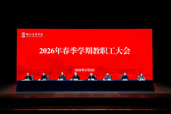 新年伊始,万象更新。3月4日下午,浙江音乐学院2026年春季学期教职工大会在大剧院召开,全体教职工齐聚一堂,凝心聚力、共谋发展,共同开启新学期奋进征程。党委书记薛亮讲话,院长王瑞主持大会,学校党政领导班子成员王均寅、汪洋、奚丽萍、董德君、李俊、施莹出席。