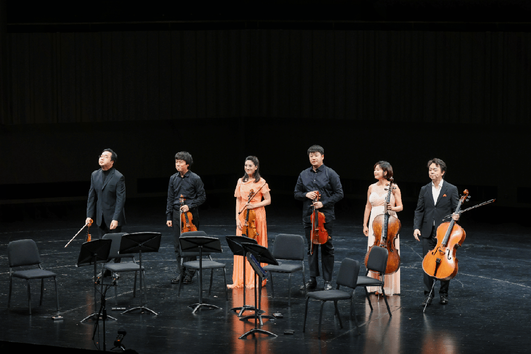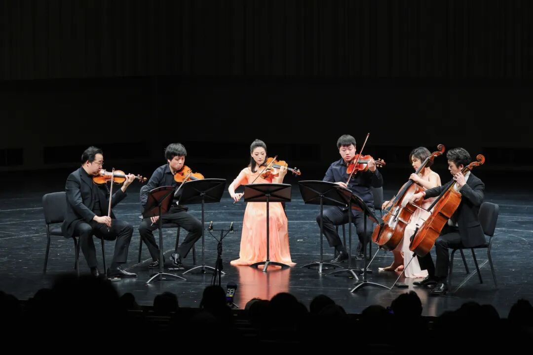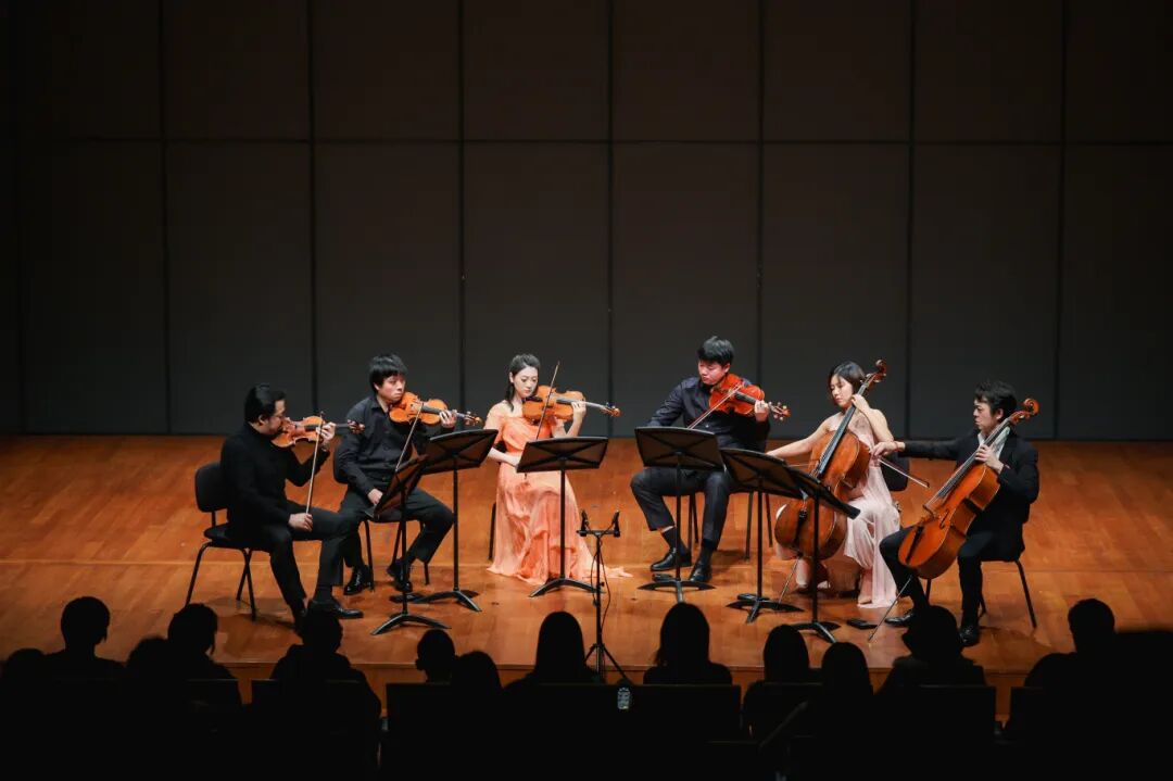 在《升华之夜》中,6位弦乐演奏家构建出一种高度流动的音响图景。小提琴声部在高音区的持续张力,与中提琴、大提琴的厚重织体形成对位关系,使作品中由压抑走向升华的心理轨迹得以清晰呈现。演奏并未停留在“晚浪”语汇的表层渲染,而是通过对声部层级的精细控制,凸显出勋伯格式“连续发展”的结构逻辑。