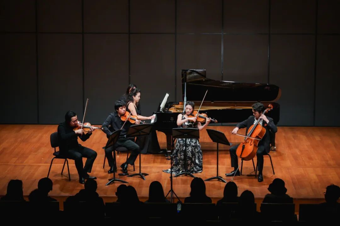 相比之下,舒曼《降E大调钢琴五重奏》则转向更为明晰的古典结构与浪漫表达之间的平衡。钢琴与弦乐之间的关系处理尤为关键:既不能形成“独奏—伴奏”的传统格局,也不能完全消解层次。现场演绎中,钢琴声部在推进结构的同时,保持了与弦乐的呼吸一致,使得整体音响呈现出一种“协同推进”的状态。